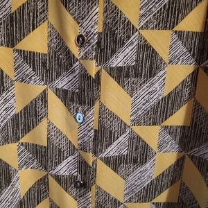 Alfani Shirt Dress Collared with buttons down the front and pocket on the chest! Geometric design with yellow, black and gray. Size 12. Pre-owned good condition. 21" chest measurement. 36" from shoulder to hem. Smoke free dog friendly home.