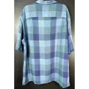 Alfani Shirt Mens Large Collared Button-Up Linen Blend Rayon Plaid Blue