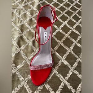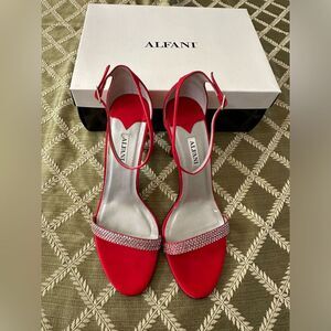 Alfani Shoes Ashton Red Sparkle Heels Size 10M 3 1/2 Heel Add a touch of elegance with these stunning Alfani red sparkle heels. Perfect for any formal occasion, these strappy heels are a size 10.
