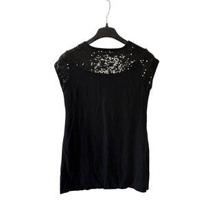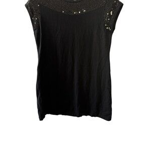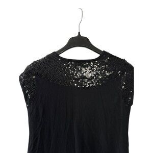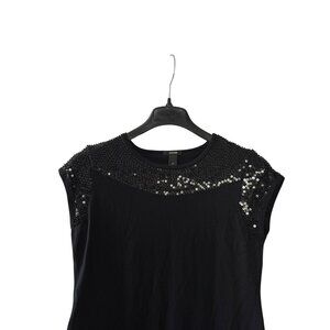 Alfani Short Sleeve Tunic Sweater Size M Sequins Beaded Black