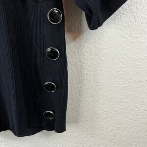 Alfani Side-Button Black Side Button Pullover Womens Size M. The classic black sweater polishes its presentation with sleek silver-tone black buttons down the side. wide sleeves. 9.5 in ribbing at the bottom.