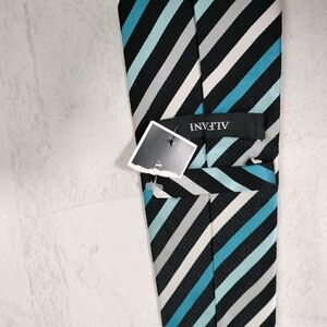 Alfani Silk Men's Necktie Striped Satin Textured Black and Blue Tie Formal Tag