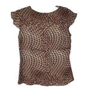 Alfani Silk Sz 8 Surplice Blouse Cap Sleeve Neutrals Wearable Art Brown Orange