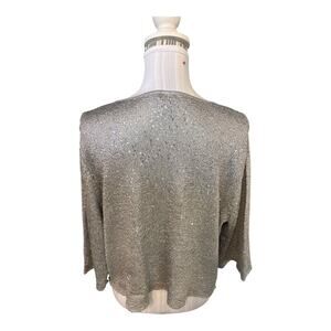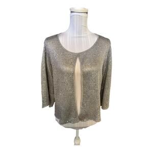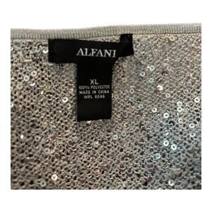 Add a touch of sparkle to your wardrobe with this beautiful Alfani silver sequined cardigan. Perfect for layering or wearing on its own, this cardigan is sure to turn heads.