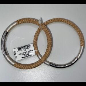 Alfani Silver-Tone 2 Piece Set Curved Bar & Braided Rope Bangle Bracelets New