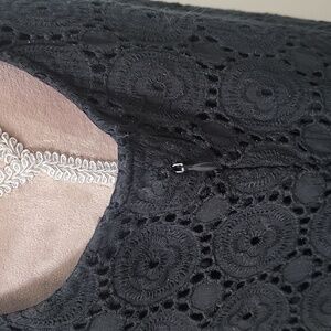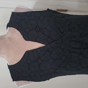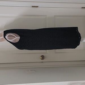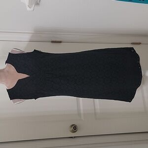 Alfani, Size 10, Black Medallion Eyelet V Neck Midi Sleeveless Dress. Lined, EUC
