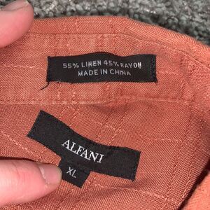 Alfani Size XL Linen Burnt Orange Button Up Collar Textured Shirt