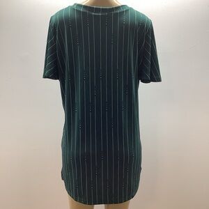 Chic teal top with vertical stripes. Short sleeves for a casual look. Ideal for everyday wear.