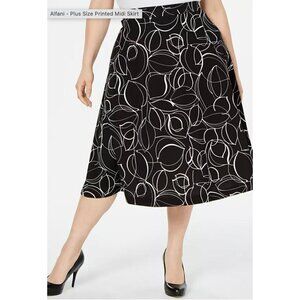 Alfani Skirt Plus Sz16W Midi Cobalt Breeze Black White Floral Elastic Waist NEW