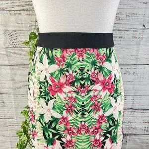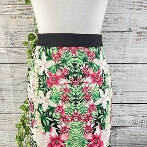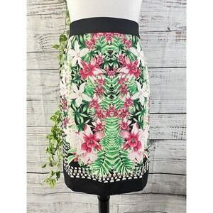 Alfani Skirt sz 12 Pink Green Floral Straight Pencil Stretch Knee Church Wedding