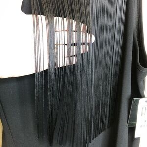 Alfani Sleeveless Black Blouse Fringe Details Size 8 NWT