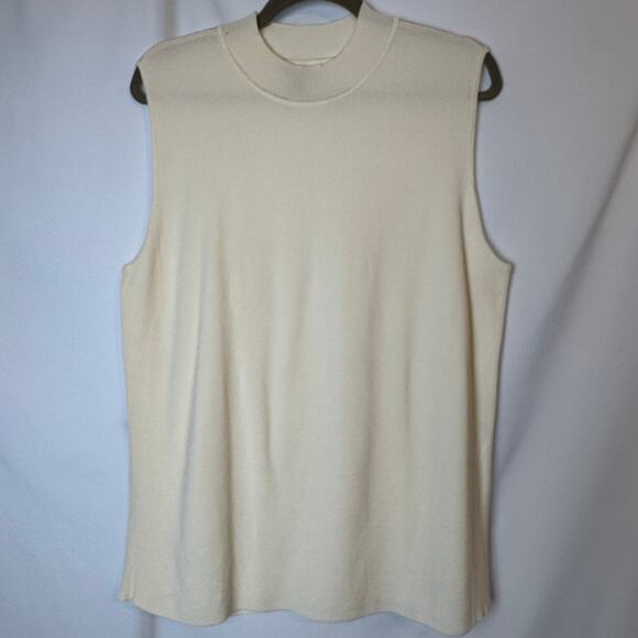 Add a versatile staple piece to complete your outfit paired with a cardigan or blazer for just about any occasion. This Alfani sleeveless, lightweight, ribbed mock turtleneck in cream is a size XL and is in excellent preowned condition.