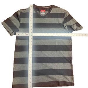 Alfani Slim Fit Stretch T-Shirt Men’s Medium Gray Black Striped V-Neck