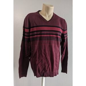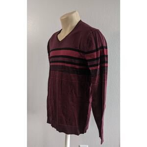 Alfani Small Men's Sweater Red and Black Striped Pullover V-Neck Lightweight New