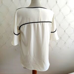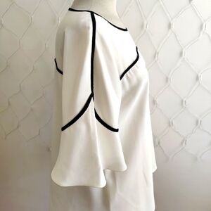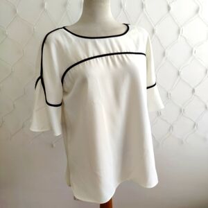 Beautiful and Classic smock style pullover top with flaired sleeves and rich black accents.