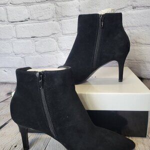 Pointed-toe booties with inner ankle zipper