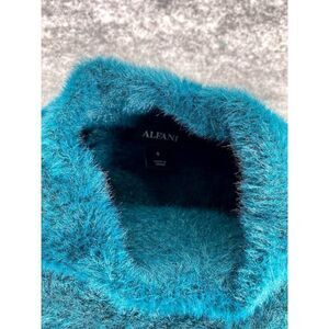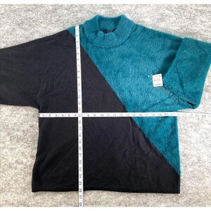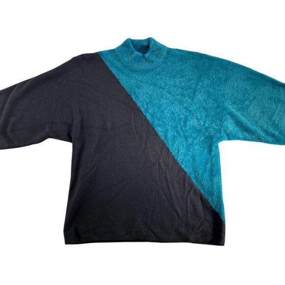 Alfani Sweater Top Small Teal Black Mock-Neck Mixed-Media Dolman NEW