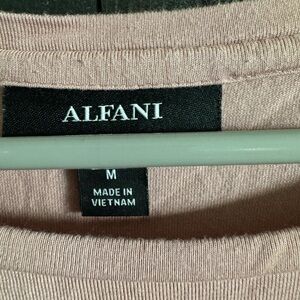 This Alfani blouse features a sophisticated tan hue with a ruched and ribbed design, offering a stylish and textured look. The long sleeves and soft fabric make it a comfortable choice for any occasion. Its elegant style is perfect for adding a touch of class to your wardrobe.