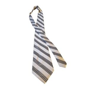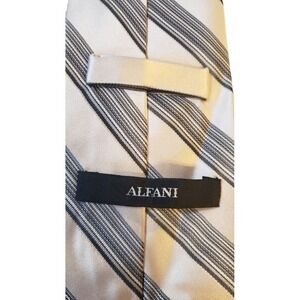 Alfani Tie Mens Silk White Black Striped Career Wear Classic Fashion Business