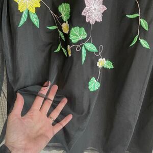 Alfani Top Black Mesh Overlay Sheer 3/4 Sleeve Floral Embroidery Sz L Whimsigoth