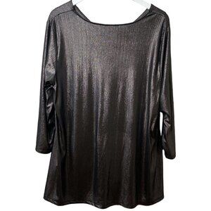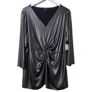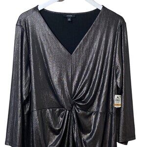 Alfani Top Plus Size 3X Shimmer Gunmetal 3/4 Sleeves Evening Blouse NWT