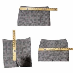 Elevate your wardrobe with these stylish and versatile Alfani trousers in size 6. These grey slacks feature a subtle plaid pattern and a comfortable knit fabric made of spandex, rayon, and cotton. The mid-rise fit and regular cut provide a flattering silhouette, while the slimming tummy control feature adds a touch of sophistication.