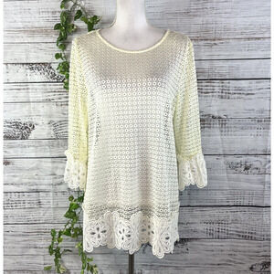 Alfani Tunic Top Beach Swim Cover Up size Medium Ivory Cream Lace Boho Peasant