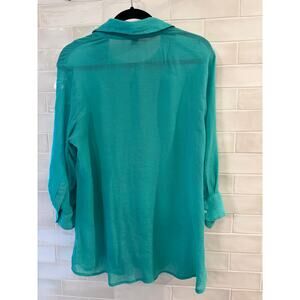 Alfani Turquoise Sheer Pleated Button Front Tunic Blouse Size 1X