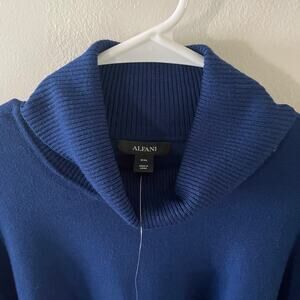 Soft and stylish navy blue poncho sweater from Alfani featuring a relaxed fit and turtleneck design. Ideal for layering on cool days, this cozy knit blends comfort with timeless casual style.