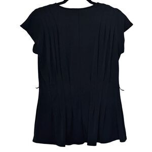 Alfani V-Neck Short Cap Sleeve Pleated Peplum Top Black Small