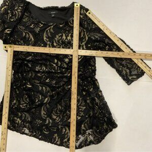Alfani Velvet-Burnout Side-Tie Top Black Gold Glitter Crop 3/4 Length Sleeves Wild Modern Animal Medium