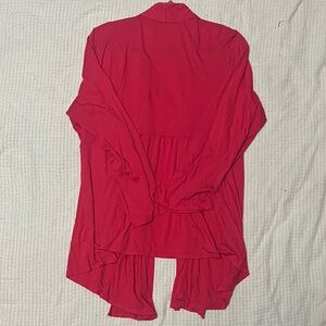 Stylish red cardigan with open front. Perfect for layering.