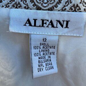 This elegant Alfani pencil skirt showcases a sophisticated beige and brown geometric pattern. Crafted from 100% acetate, it ensures durability and a refined finish.