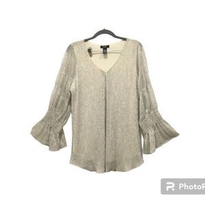 Alfani shimmery V-neck fully body lined with sheer Victorian Sleeves size medium.