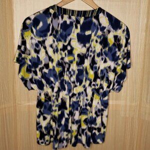 Alfani women’s watercolor poncho style tunic top medium. Good condition. Measurements are: 25” from shoulder to hem, and approx. 18” from armpit to armpit.