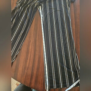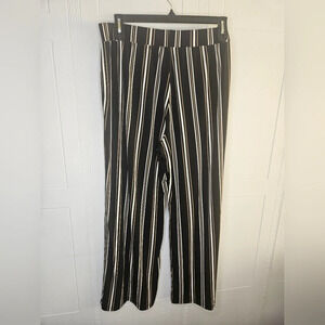 Pristine condition elastic waist pull on wide leg pants high rise flat front, in vertical black white gold stripe, size 1X.
