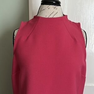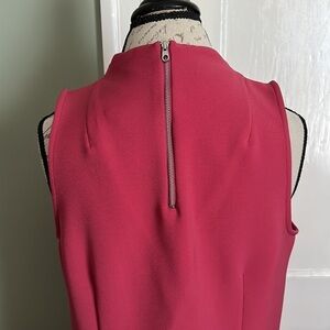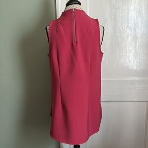 Beautiful winter rose high-neck sleeveless crepe tunic by Alfani is so flattering on its own or as a layering piece. Features a shirttail hem, and exposed polished silver-tone back zipper.