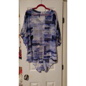 Alfani Woman 3X Blue & White Abstract Print Sheer Blouse Top