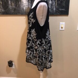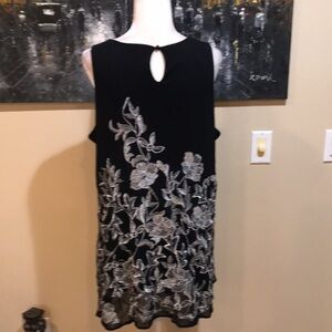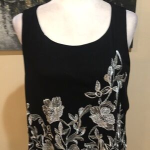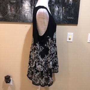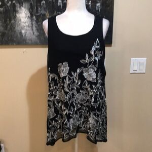 Alfani Woman Black and Silver Metallic Floral Asymmetrical Hem Swing Top-Size 1X