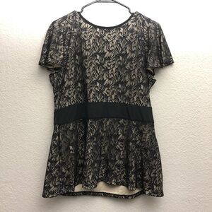 Alfani Woman Black dress with lacy floral / leaf design and front tie Size 1X cream underlay