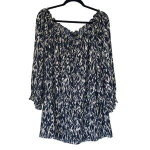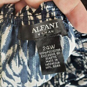 Alfani Woman Blue White Print Tunic Top Blouse 24W Elastic Waist Work Career