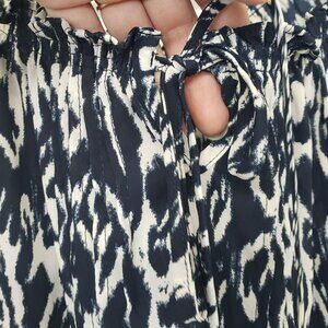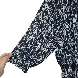 Alfani Woman Blue White Print Tunic Top Blouse 24W Keyhole Elastic Waist