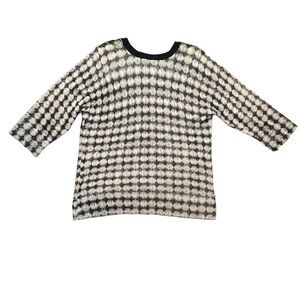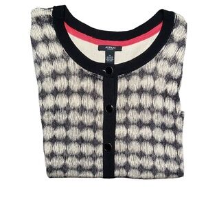 Alfani Woman Button Knit Cardigan 3/4 Sleeve Black Tan 1X Geometric Print