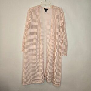 Alfani Woman Open Front Ottoman Sheer Stripe Cardigan Sweater Pink Plus Sz 2X