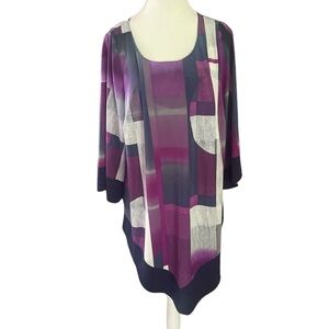 Alfani Woman Purple Geometric Handkerchief Tunic Size 1X