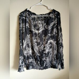 elastic hem Black gray long Sleeve 100% Silk Size 16W 22in armpit to armpit 26in length
