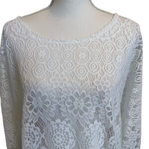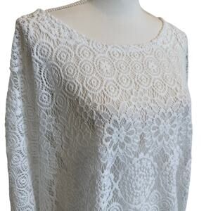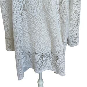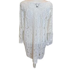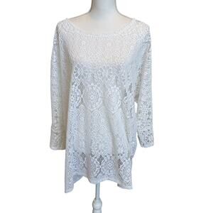 Alfani Woman Tunic Top Size 3X White Lace Crochet Beachy Boho Coastal Cover Up