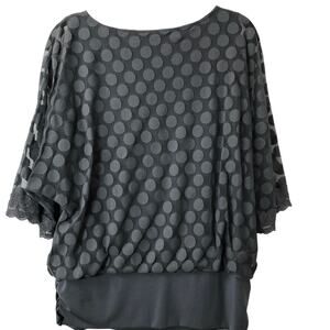 Alfani Woman polka dot mesh overlay boho crochet detail flare sleeves