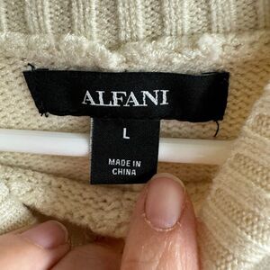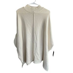 Alfani Women Ivory Turtleneck Oversized Faux Fur Cuff Poncho Sz Large NWT