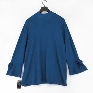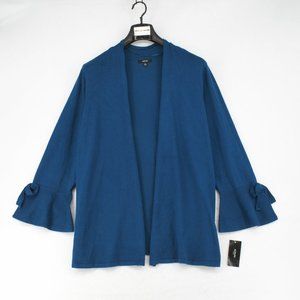 New Alfani Women Plus Long Bell Sleeve Open Front Tie Cuff Cardigan Sweater Teal